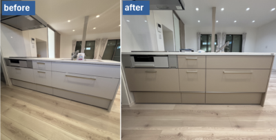 コストを抑えて綺麗にしたい方やお部屋のインテリアと統一感を出したい・・・などの、キッチンの見た目を手軽に変えたい方にもおすすめの施工です。
